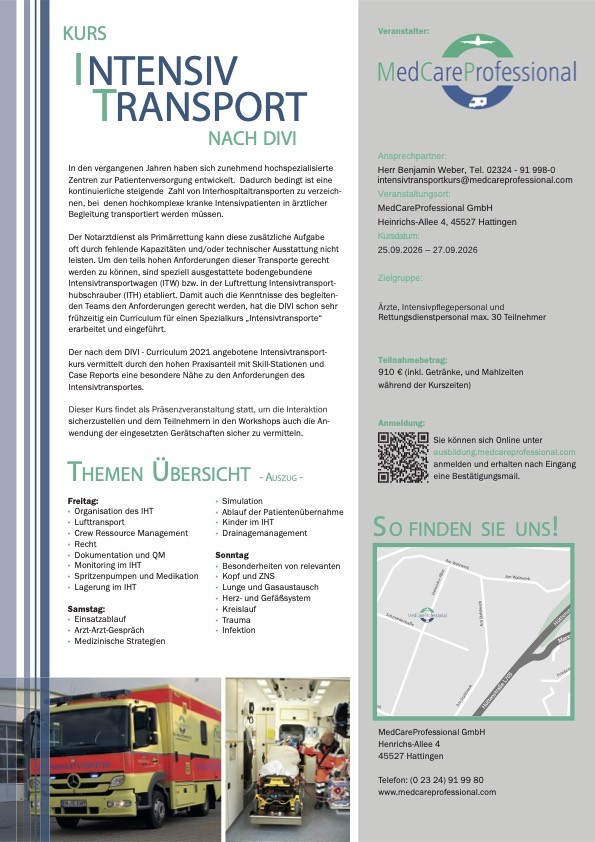 Intensivtransport nach DIVI | Hattingen | 25. September 2026 - 27. September 2026