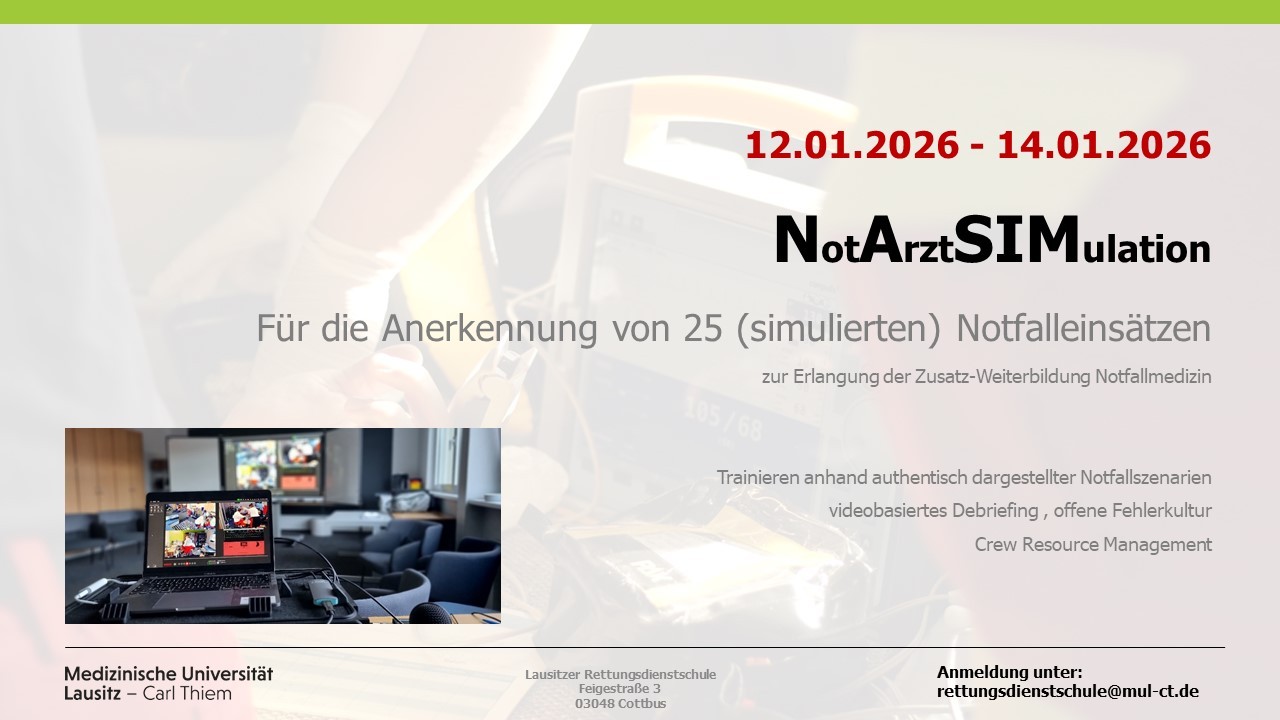 NASIM25 - Notarztsimulationskurs | Cottbus | 12. Januar 2026 - 14. Januar 2026