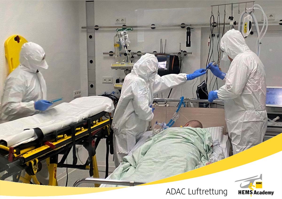 Die ADAC Luftrettung, der ADAC Ambulanz Service und die ADAC HEMS Academy haben in den vergangenen Monaten viel Expertise bei der Versorgung und dem Transport von COVID-Patienten aufbauen können. Gemeinsam wollen wir unsere Erkenntnisse und Erfahrung im Rahmen eines sehr aufwendigen und äußerst praxisbezogenen Kurses weitergeben.