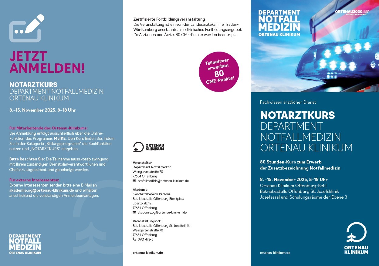 Notarztkurs Department Notfallmedizin Ortenau Klinikum | Offenburg | 08. November 2025 - 15. November 2025