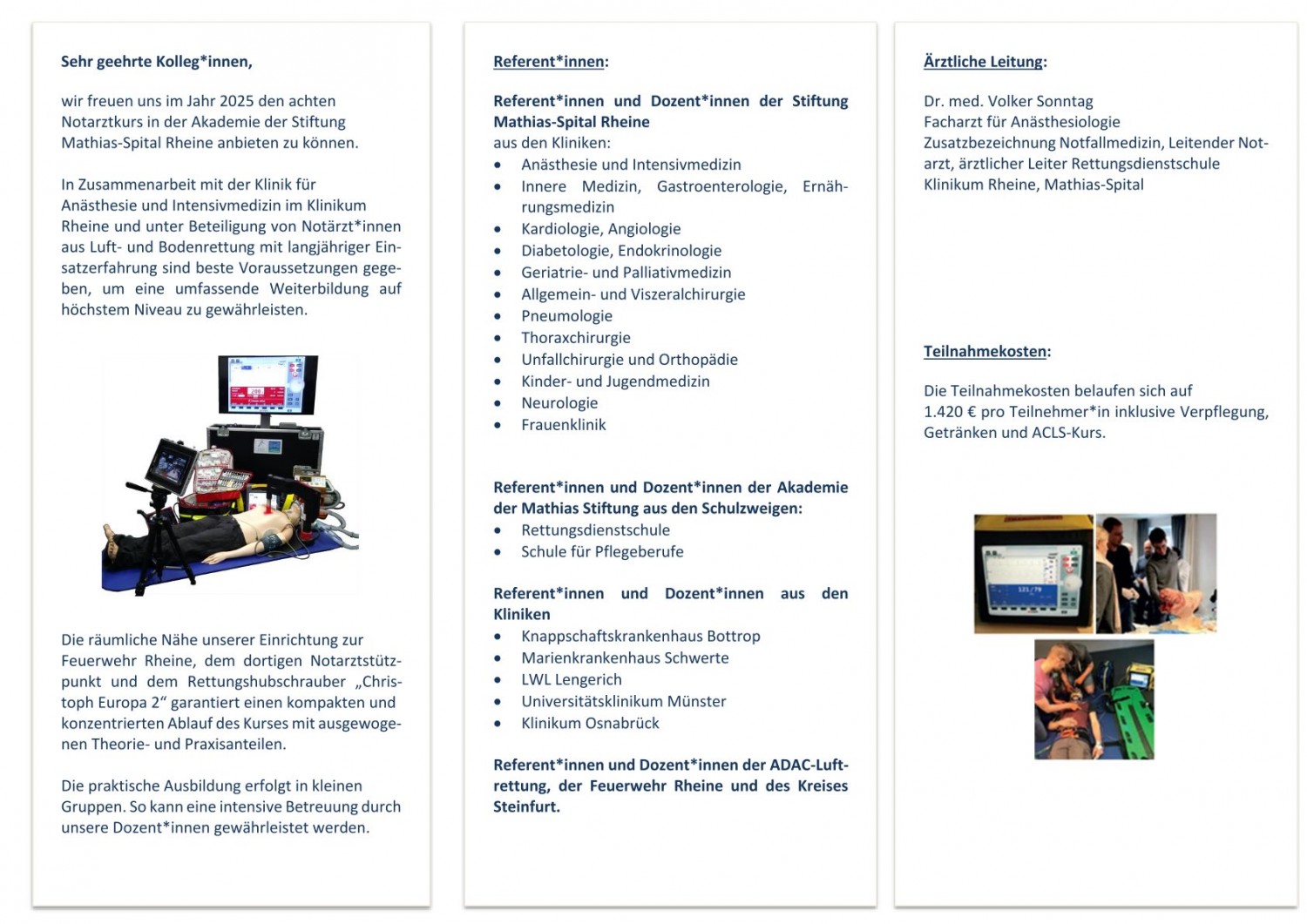 Wir freuen uns, Ihnen im Jahr 2026 den achten Notarztkurs an der Akademie der Mathias Stiftung in Rheine anbieten zu können.