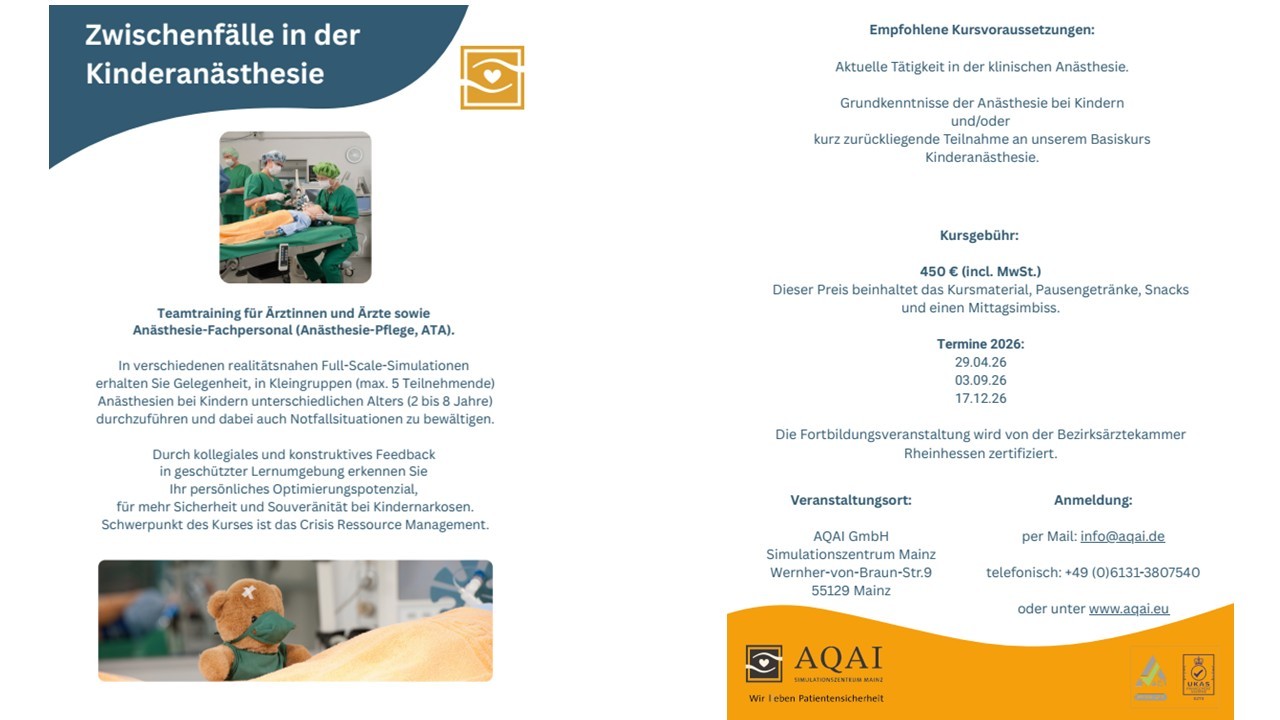 Zwischenfälle in der Kinderanästhesie | Mainz | 17. Dezember 2026 - 17. Dezember 2026
