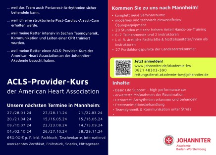 ACLS-Provider-Kurs der AHA | Mannheim | 26. Juni 2026 - 27. Juni 2026