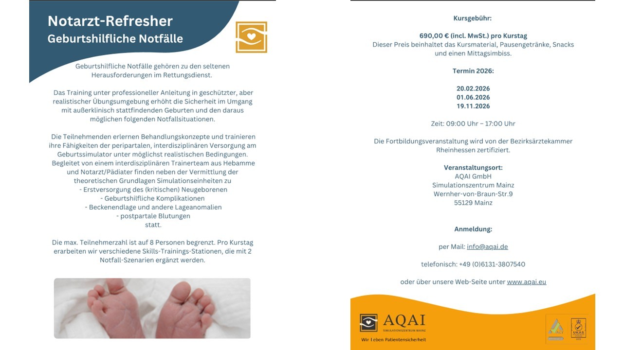Notarzt - Refresher: Thementag geburtshilfliche Notfälle | Mainz | 01. Juni 2026 - 01. Juni 2026
